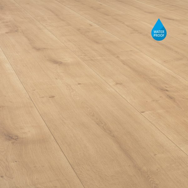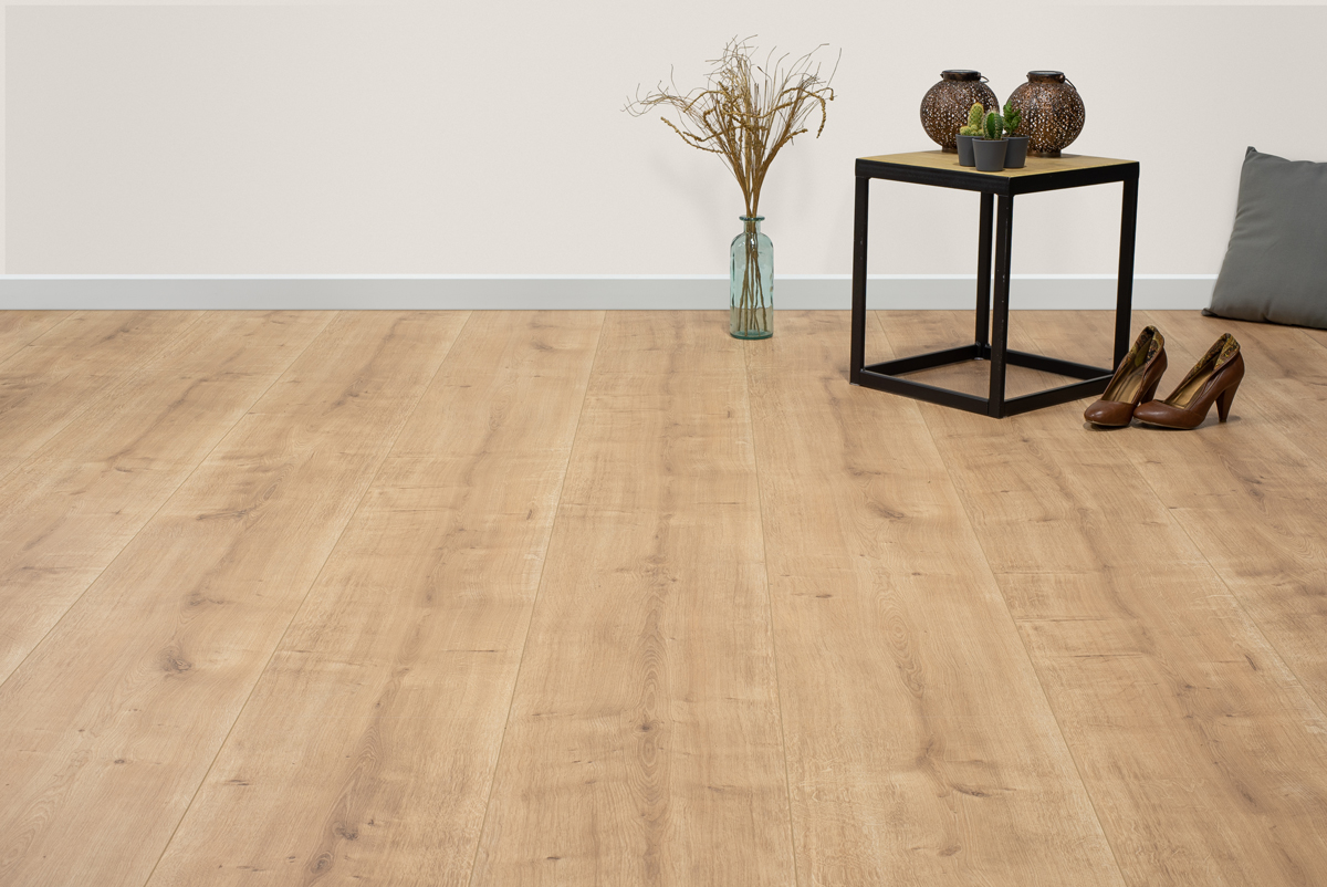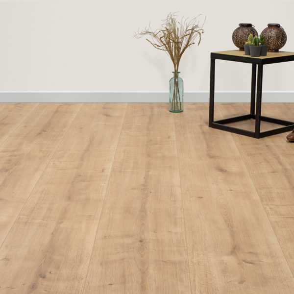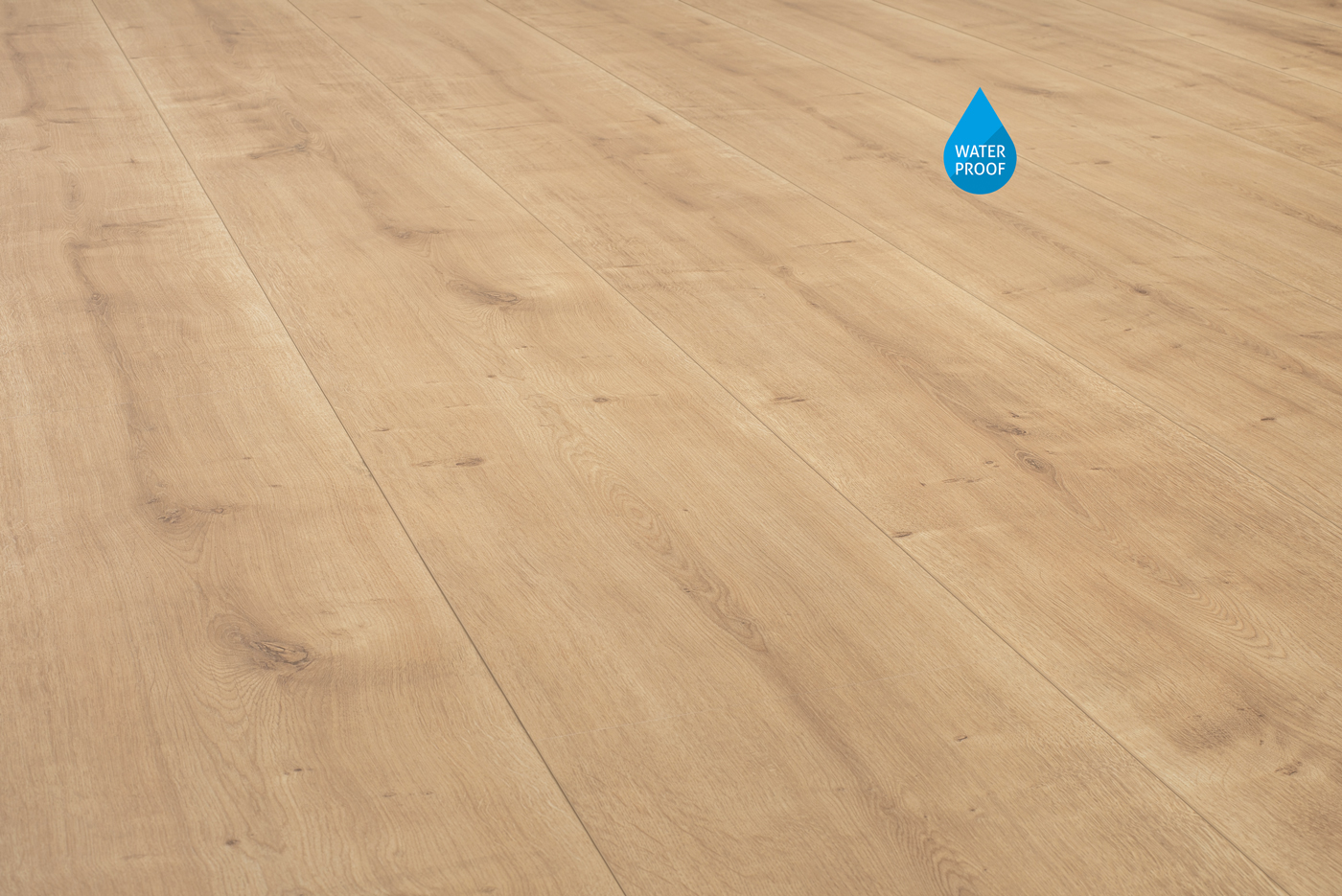 Het Floer Landhuis Laminaat in de kleur Onbehandelde Eik is een robuuste laminaat plank voorzien van maar liefst 20 jaar garantie! Deze extra brede laminaat vloer wordt geproduceerd in Duitsland uit A-kwaliteit materialen. Dit zorgt ervoor dat de Landhuis Laminaat in deze onbehandelde eiken kleur zeer slijtvast is. De Floer heeft een afmeting van 128,8 x 32,8 x 0,8 cm waardoor ze een zeer luxe en moderne uitstraling geven aan iedere woonruimte. De 32 cm brede vloerplanken hebben een sfeervol eiken design en zijn geschikt voor het leggen op een vloerverwarming! De Landhuis planken hebben een luxe V-groef aan de lange zijde die het extra brede formaat nog eens benadrukt. Daarnaast is de collectie waterproof, ook in de groef. De groeven hebben een speciale ‘watervast’ coating gekregen waardoor de Floer tot 4 uur waterbestendig is.